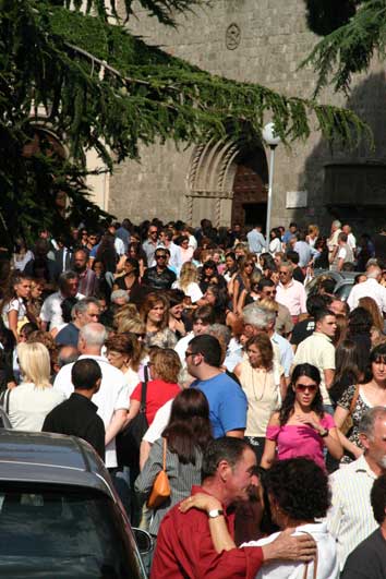La folla all'uscita della chiesa